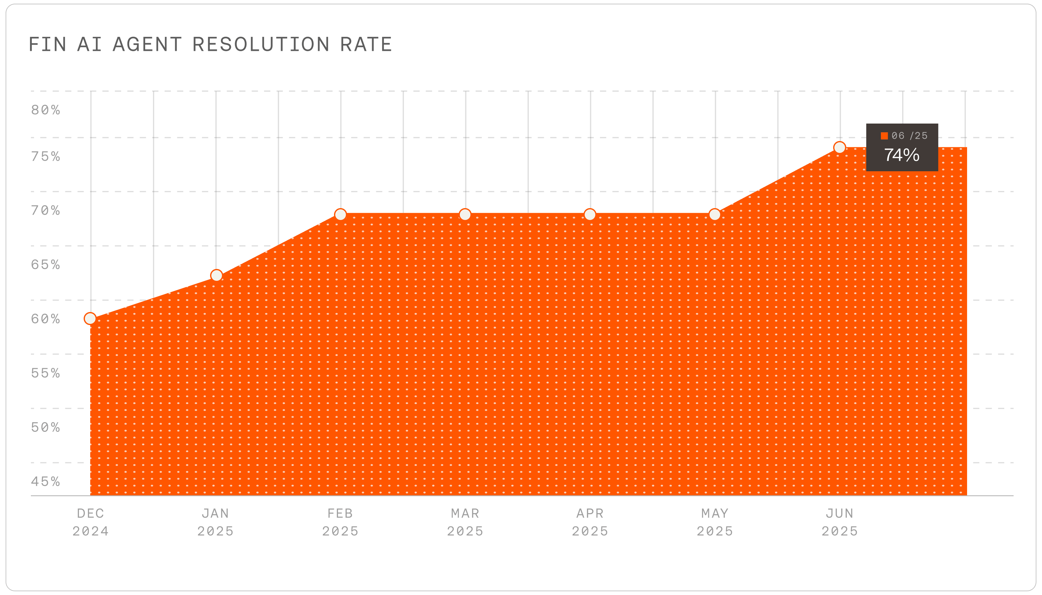 - Performance results: Fin now handles nearly 20,000 monthly resolutions with 90% involvement in conversations and and a resolution rate of over 70% that continues to grow.