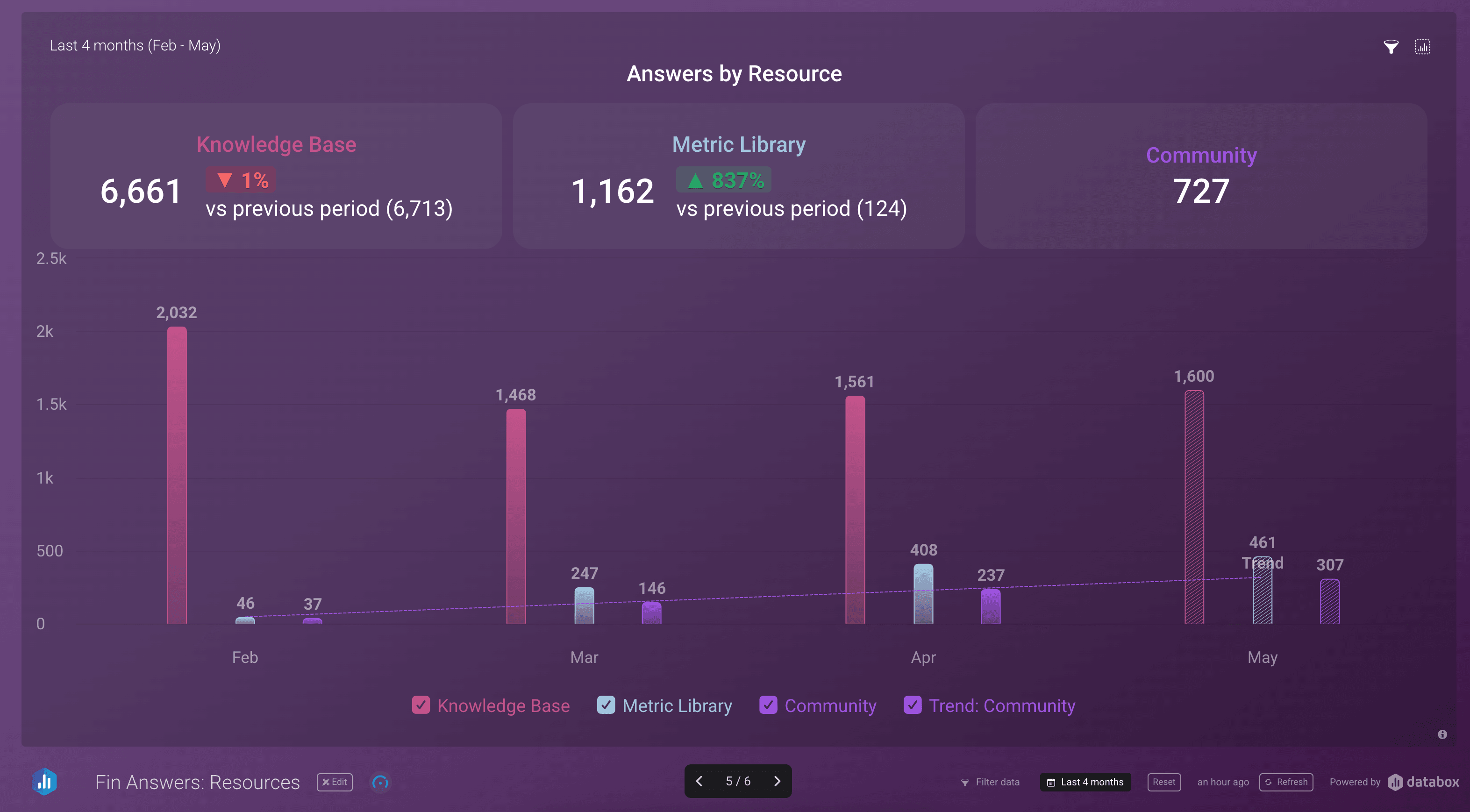 To give Fin richer context, the Databox team developed a Metric Library that hosts detailed technical information, expected behaviors, and known limitations for all of their metrics and integrations. It quickly became one of Fin’s most relied-upon resources and has been instrumental in enabling Fin to deliver accurate, technically sound responses, even for complex or niche queries. In addition, the team also launched a Community forum, populated with real-world customer use cases. Together, these resources provided Fin with not just more data, but a much broader vocabulary – helping it understand what customers were asking, even when phrased unconventionally.